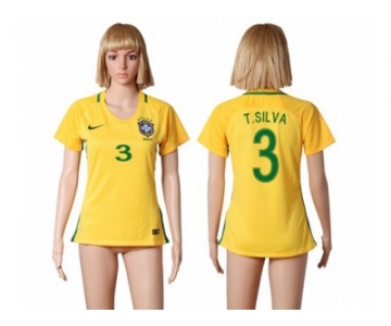 Women's Brazil #3 T.Silva Home Soccer Country Jersey