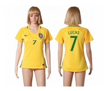 Women's Brazil #7 Lucas Home Soccer Country Jersey