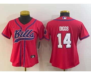 Women's Buffalo Bills #14 Stefon Diggs Red Stitched Cool Base Nike Baseball Jersey