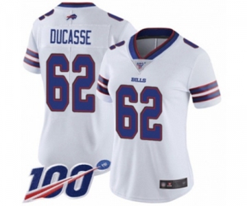 Women's Buffalo Bills #62 Vladimir Ducasse White Vapor Untouchable Limited Player 100th Season Football Jersey