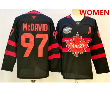 Women's Canada #97 Connor McDavid Black 2025 4 Nations Face-Off Premium With A Patch Stitched Jersey