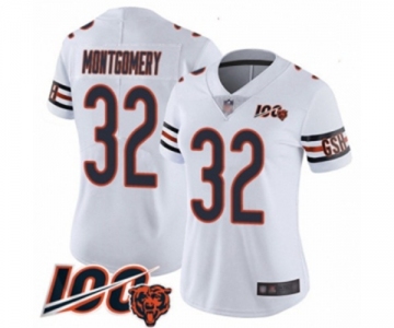 Women's Chicago Bears #32 David Montgomery White Vapor Untouchable Limited Player 100th Season Football Jersey