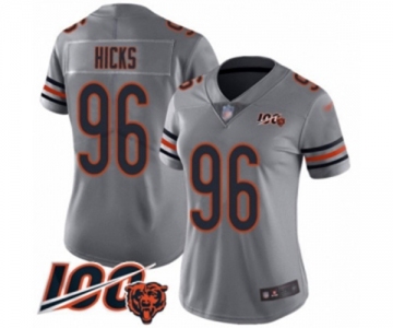 Women's Chicago Bears #96 Akiem Hicks Limited Silver Inverted Legend 100th Season Football Jersey