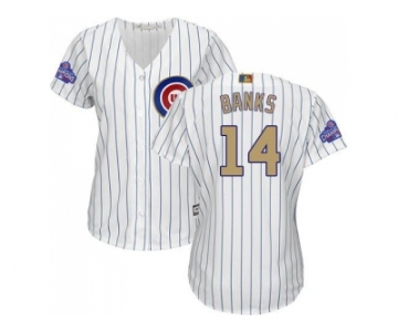 Women's Chicago Cubs #14 Ernie Banks White(Blue Strip) 2017 Gold Program Cool Base Stitched MLB Jersey
