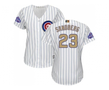 Women's Chicago Cubs #23 Ryne Sandberg White(Blue Strip) 2017 Gold Program Cool Base Stitched MLB Jersey