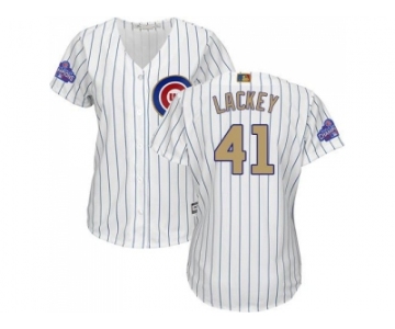 Women's Chicago Cubs #41 John Lackey White(Blue Strip) 2017 Gold Program Cool Base Stitched MLB Jersey