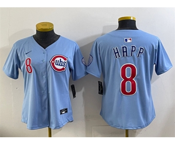 Women's Chicago Cubs #8 Ian Happ Blue 2024 25 2nd Alternatemited Stitched Baseball Jersey