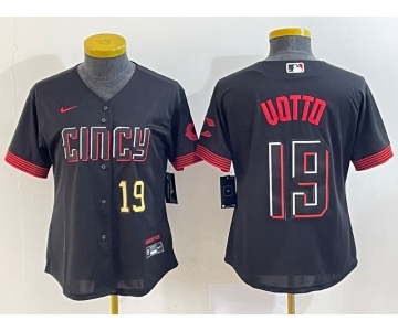 Women's Cincinnati Reds #19 Joey Votto Black 2023 City Connect Cool Base Stitched Jersey1