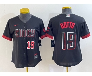 Women's Cincinnati Reds #19 Joey Votto Number Black 2023 City Connect Cool Base Stitched Jersey2