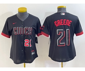 Women's Cincinnati Reds #21 Hunter Greene Number Black 2023 City Connect Cool Base Stitched Jersey2
