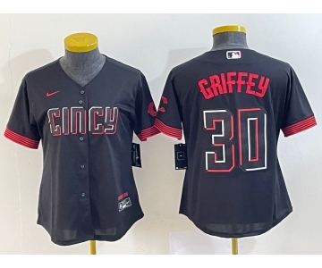 Women's Cincinnati Reds #30 Ken Griffey Jr Black 2023 City Connect Cool Base Stitched Jersey1