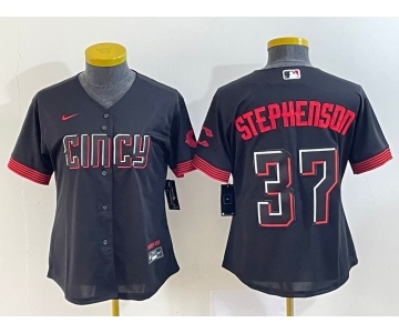 Women's Cincinnati Reds #37 Tyler Stephenson Black 2023 City Connect Cool Base Stitched Jersey