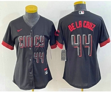Women's Cincinnati Reds #44 Elly De La Cruz Number Black 2023 City Connect Cool Base Stitched Baseball Jersey2
