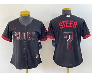 Women's Cincinnati Reds #7 Spencer Steer Black 2023 City Connect Cool Base Stitched Baseball Jersey