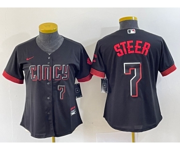 Women's Cincinnati Reds #7 Spencer Steer Numer Black 2023 City Connect Cool Base Stitched Baseball Jersey2