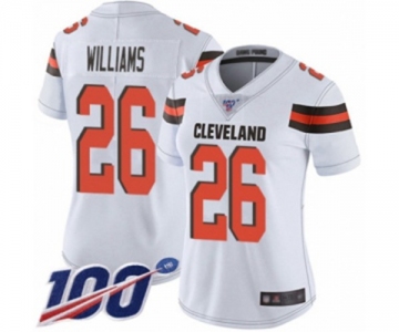 Women's Cleveland Browns #26 Greedy Williams White Vapor Untouchable Limited Player 100th Season Football Jersey