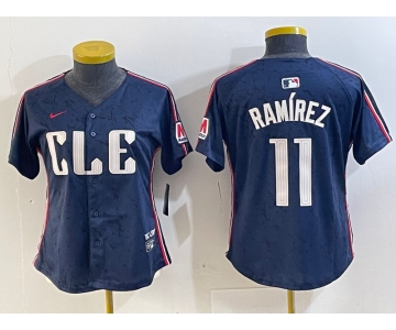 Women's Cleveland Guardians #11 Jose Ramirez Navy 2024 City Connect Limited Stitched Jersey