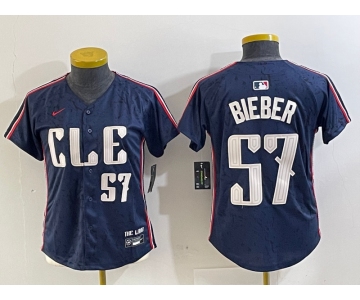 Women's Cleveland Guardians #57 Shane Bieber Navy 2024 City Connect Limited Stitched Jersey