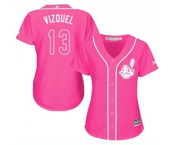 Women's Cleveland Indians #13 Omar Vizquel Authentic Pink Fashion Cool Base Baseball Jersey