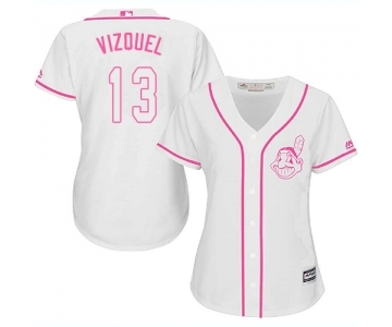 Women's Cleveland Indians #13 Omar Vizquel Replica White Fashion Cool Base Baseball Jersey