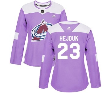 Women's Colorado Avalanche #23 Milan Hejduk Adidas Authentic Fights Cancer Practice Purple Jersey