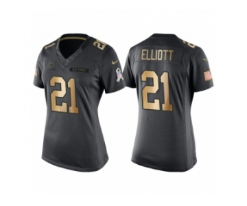 Women's Dallas Cowboys #21 Ezekiel Elliott Anthracite Gold Special Edition Salute to Service Jersey