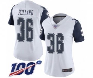 Women's Dallas Cowboys #36 Tony Pollard Limited White Rush Vapor Untouchable 100th Season Football Jersey