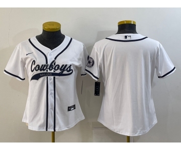 Women's Dallas Cowboys Blank White With Patch Cool Base Stitched Baseball Jersey