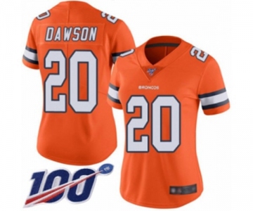 Women's Denver Broncos #20 Duke Dawson Limited Orange Rush Vapor Untouchable 100th Season Football Jersey