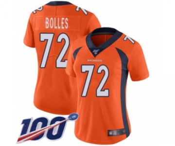 Women's Denver Broncos #72 Garett Bolles Orange Team Color Vapor Untouchable Limited Player 100th Season Football Jersey
