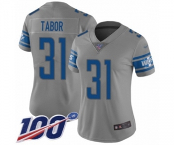 Women's Detroit Lions #31 Teez Tabor Limited Gray Inverted Legend 100th Season Football Jersey
