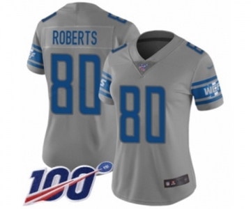 Women's Detroit Lions #80 Michael Roberts Limited Gray Inverted Legend 100th Season Football Jersey