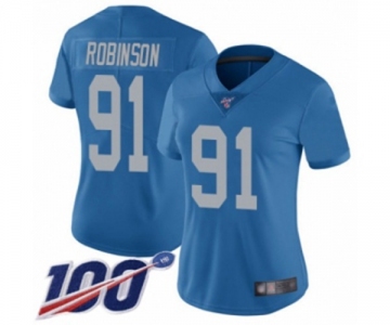 Women's Detroit Lions #91 A'Shawn Robinson Blue Alternate Vapor Untouchable Limited Player 100th Season Football Jersey