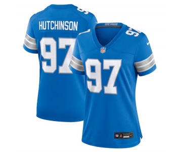 Women's Detroit Lions #97 Aidan Hutchinson Blue Stitched Jersey
