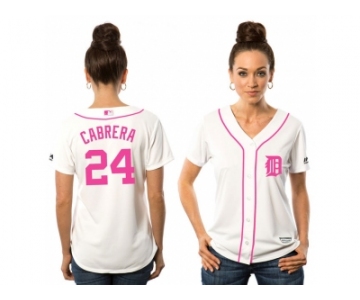 Women's Detroit Tigers #24 Miguel Cabrera White Home 2016 Mother's Day Cool Base Jersey