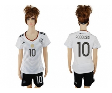 Women's Germany #10 Podolski White Home Soccer Country Jersey
