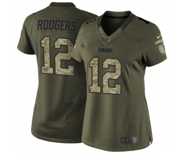 Your Position: Home>NIKE NFL Jerseys>Nike Green Bay Packers>nike women>Women's Green Bay Packers #12 Aaron Rodgers Elite Green Salute to Service Football Jersey