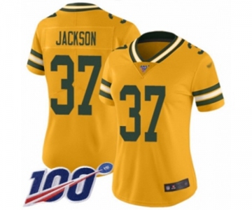 Women's Green Bay Packers #37 Josh Jackson Limited Gold Inverted Legend 100th Season Football Jersey