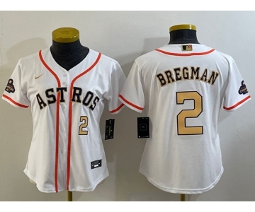 Women's Houston Astros #2 Alex Bregman Number 2023 White Gold World Serise Champions Patch Cool Base Stitched Jerseys