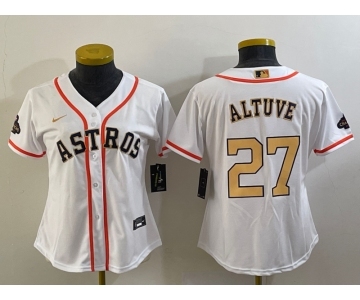 Women's Houston Astros #27 Jose Altuve 2023 White Gold World Serise Champions Patch Cool Base Stitched Jersey