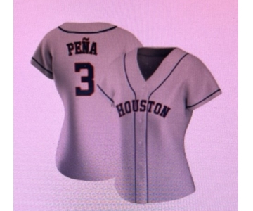 Women's Houston Astros #3 Felix Pe単a Grey Road Flex Base Authentic Collection Baseball Jersey
