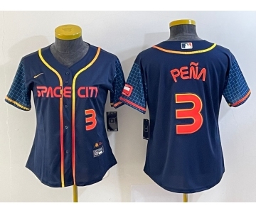 Women's Houston Astros #3 Jeremy Pena Number 2022 Navy Blue City Connect Cool Base Stitched Jersey