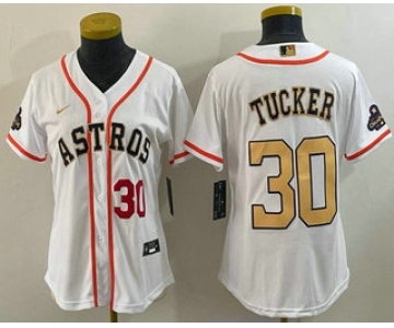 Women's Houston Astros #30 Kyle Tucker 2023 White Gold World Serise Champions Patch Cool Base Stitched Jersey