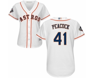 Women's Houston Astros #41 Brad Peacock Authentic White Home Cool Base 2019 World Series Bound Baseball Jersey