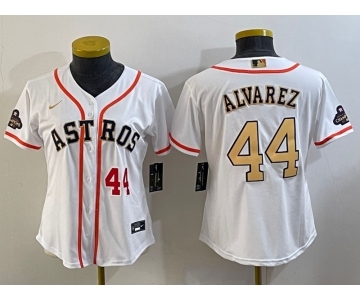 Women's Houston Astros #44 Yordan Alvarez Number 2023 White Gold World Serise Champions Patch Cool Base Stitched Jerseys