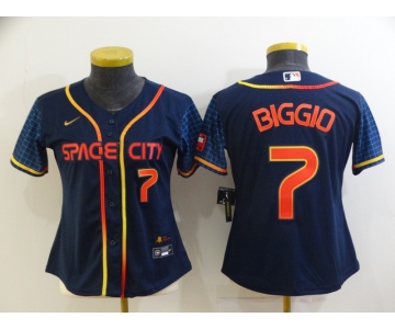 Women's Houston Astros #7 Craig Biggio Number 2022 Navy Blue City Connect Cool Base Stitched Jersey