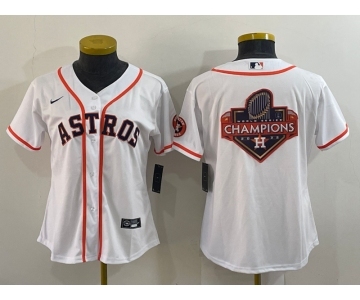 Women's Houston Astros White Champions Big Logo With Patch Stitched MLB Cool Base Nike Jersey