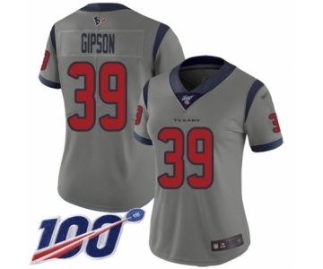 Women's Houston Texans #39 Tashaun Gipson Limited Gray Inverted Legend 100th Season Football Jersey