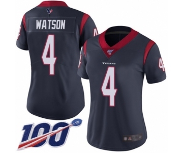 Women's Houston Texans #4 Deshaun Watson Navy Blue Team Color Vapor Untouchable Limited Player 100th Season Football Jersey