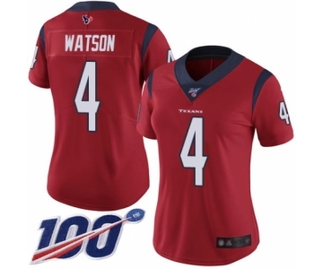 Women's Houston Texans #4 Deshaun Watson Red Alternate Vapor Untouchable Limited Player 100th Season Football Jersey